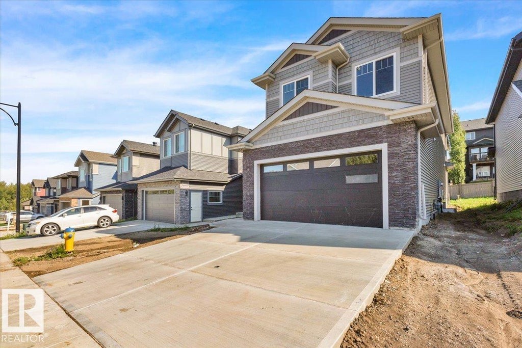Welcome Home! Stunning quality built 2188 Sq Ft home with elegant design choices and premium *UPGRADES* throughout located just steps from scenic ravines and walking trails of the Big Lakes - Hawks Ridge NW Edmonton. Upgrades throughout. Spacious den and a living area with open to above 20 ft ceilings, feature wall with electric fireplace, and massive sun seeking windows provides plenty of natural light. Wall to wall kitchen boasts premium cabinetry provides tons of storage, waterfall upgraded countertops, wine fridge, under counter lighting. Butler’s pantry for effortless entertaining and living! Main floor half bathroom. Large bonus room, three spacious bedrooms, 2 full bathrooms. Luxurious master bed with a 5-piece ensuite and walk-in closet. Top floor laundry room. Additional features; built in appliances, deck with natural gas line, tall ceilings, mudroom with built-ins and shoe storage, side entrance with suite potential, oversized garage hot and cold water taps and man door. Ready to move in NOW!